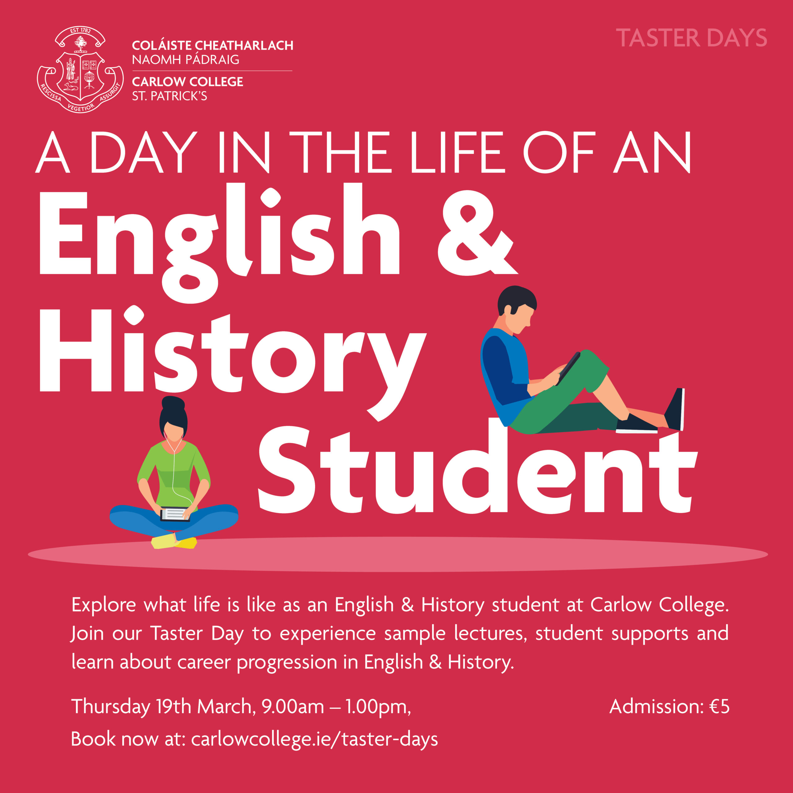 For more information on BA (Hons) in English & History (PC411) visit: carlowcollege.ie/pc411