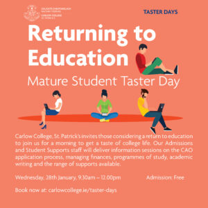 Carlow College, St. Patrick’s is hosting a Taster Day for Senior Cycle, Further Education and Mature students interested in a career in Psychology.