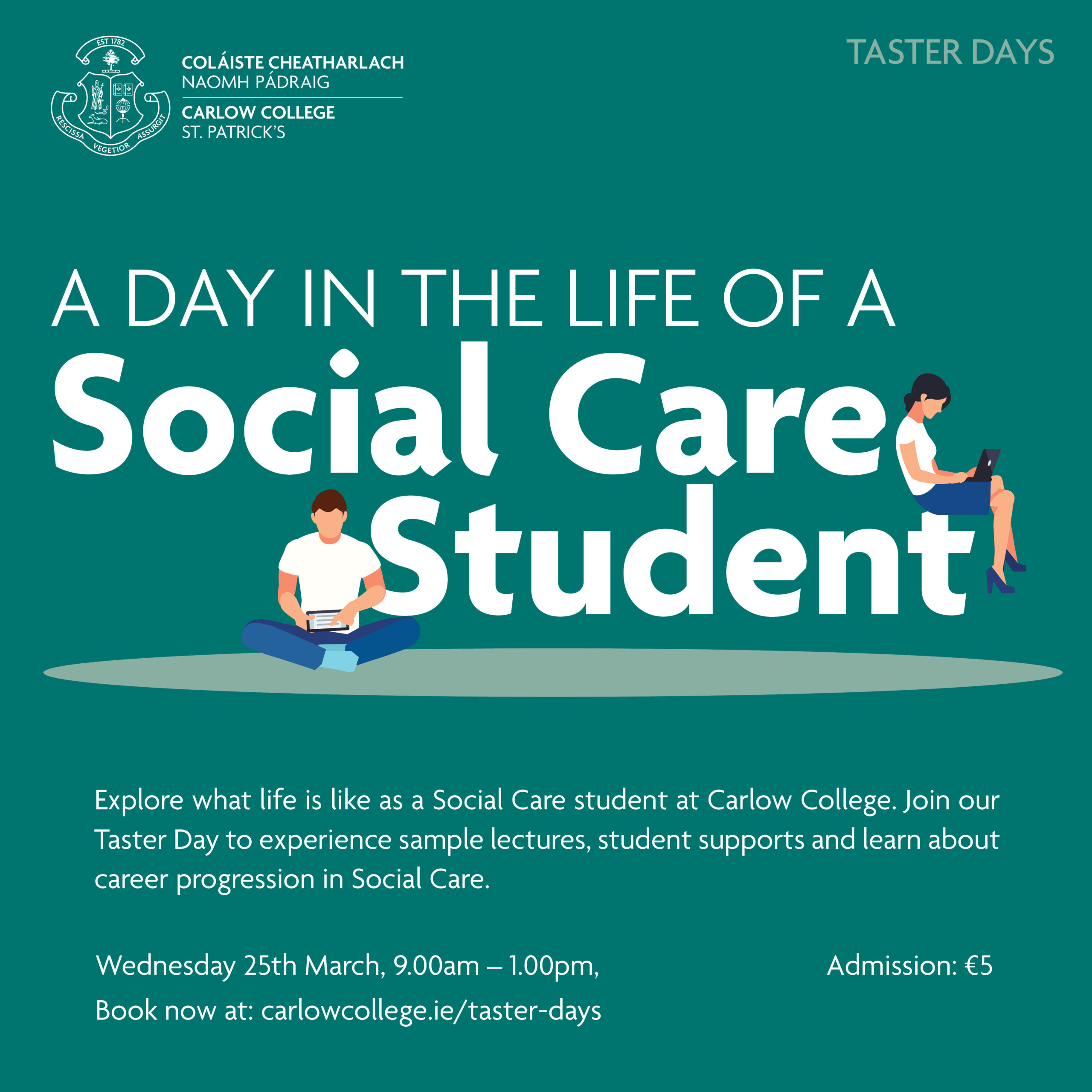 Carlow College, St. Patrick’s is hosting a Taster Day for Senior Cycle, Further Education and Mature students interested in a career in Social Care.